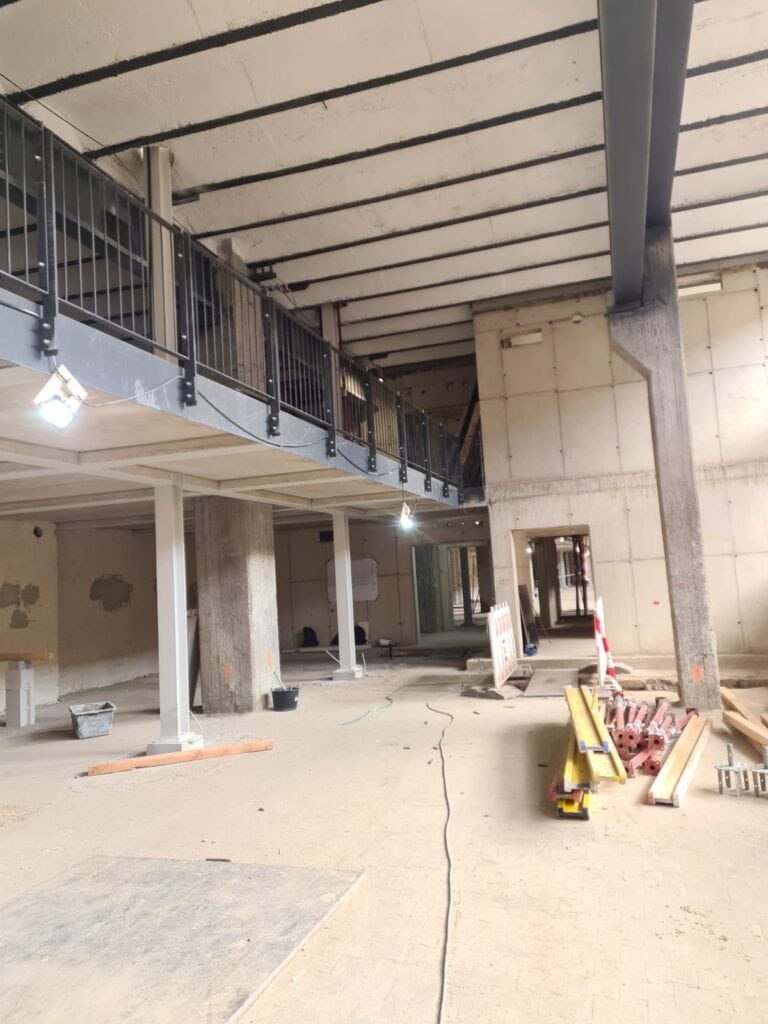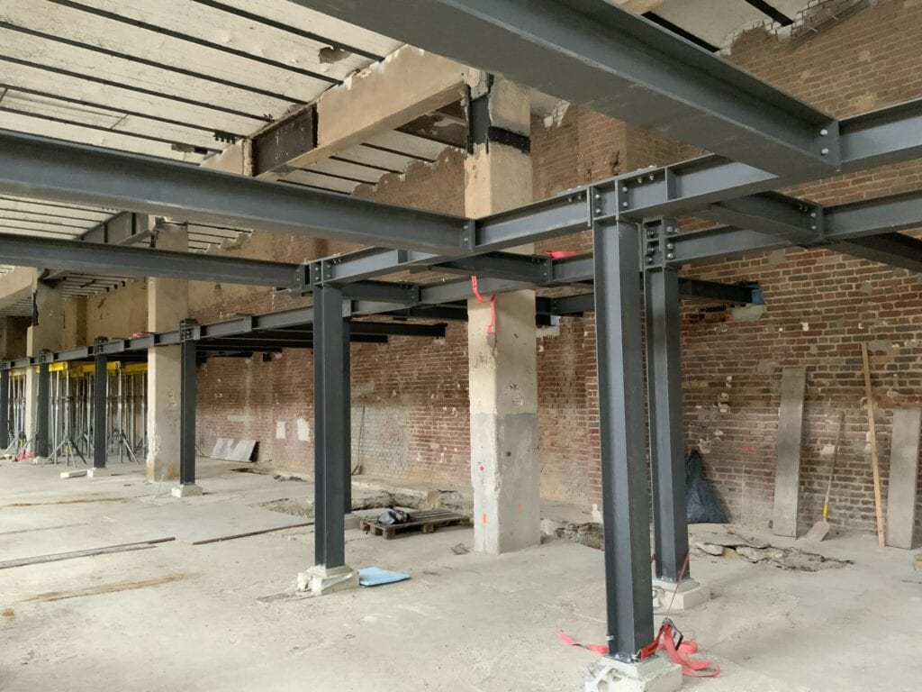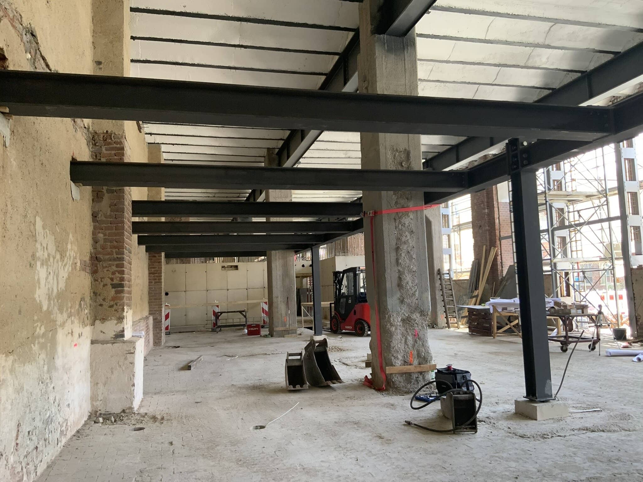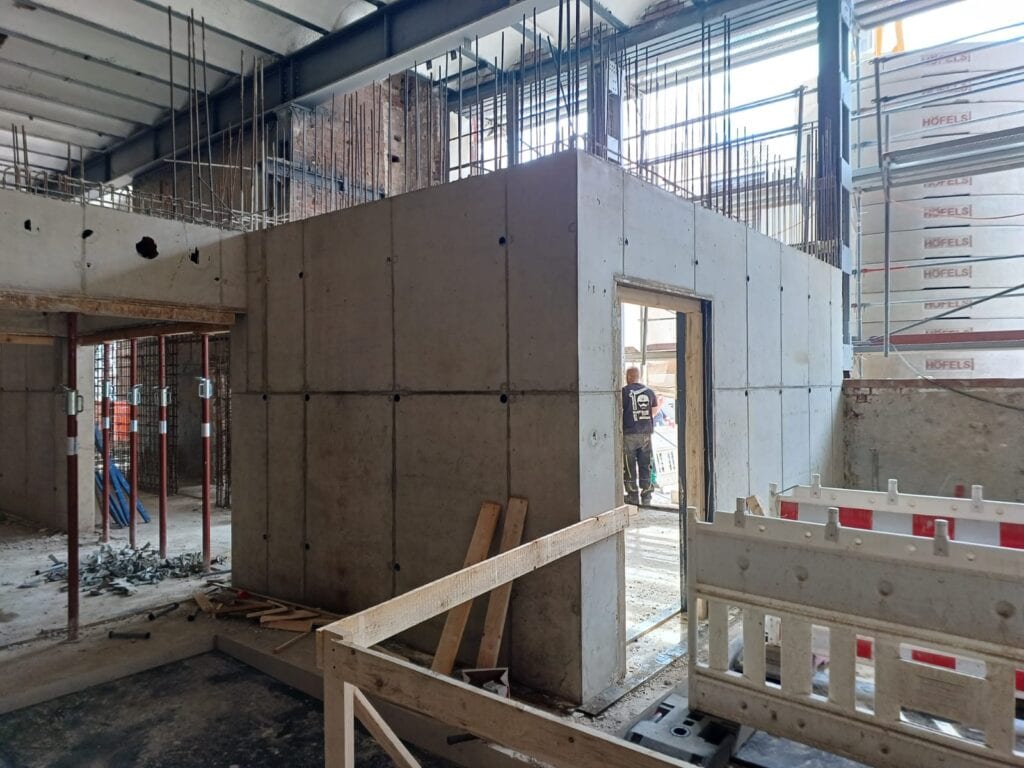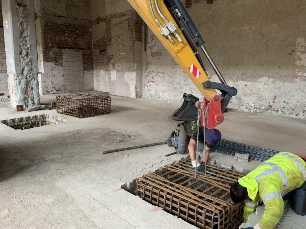 Neue Fundamente, Aufzugsschacht, Stahlkonstruktion und kompletter Innenausbau – aus einer historischen Werkhalle wird ein modernes Verwaltungsgebäude.